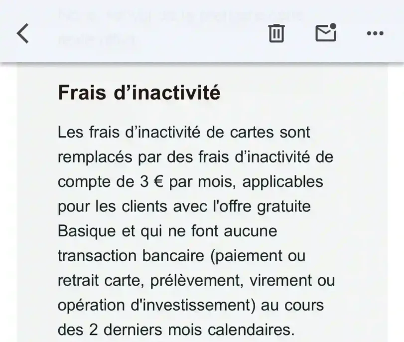 Ce message, envoyé deux mois avant la mise en œuvre effective de ces frais, indiquait également clairement que les clients concernés recevraient un nouvel email en amont de leur application, afin de les informer, de les rassurer et de leur laisser le temps nécessaire pour prendre les mesures appropriées, qu’il s’agisse d’utiliser leur compte, de ne rien faire, ou de le clôturer s’il n’est plus utile.